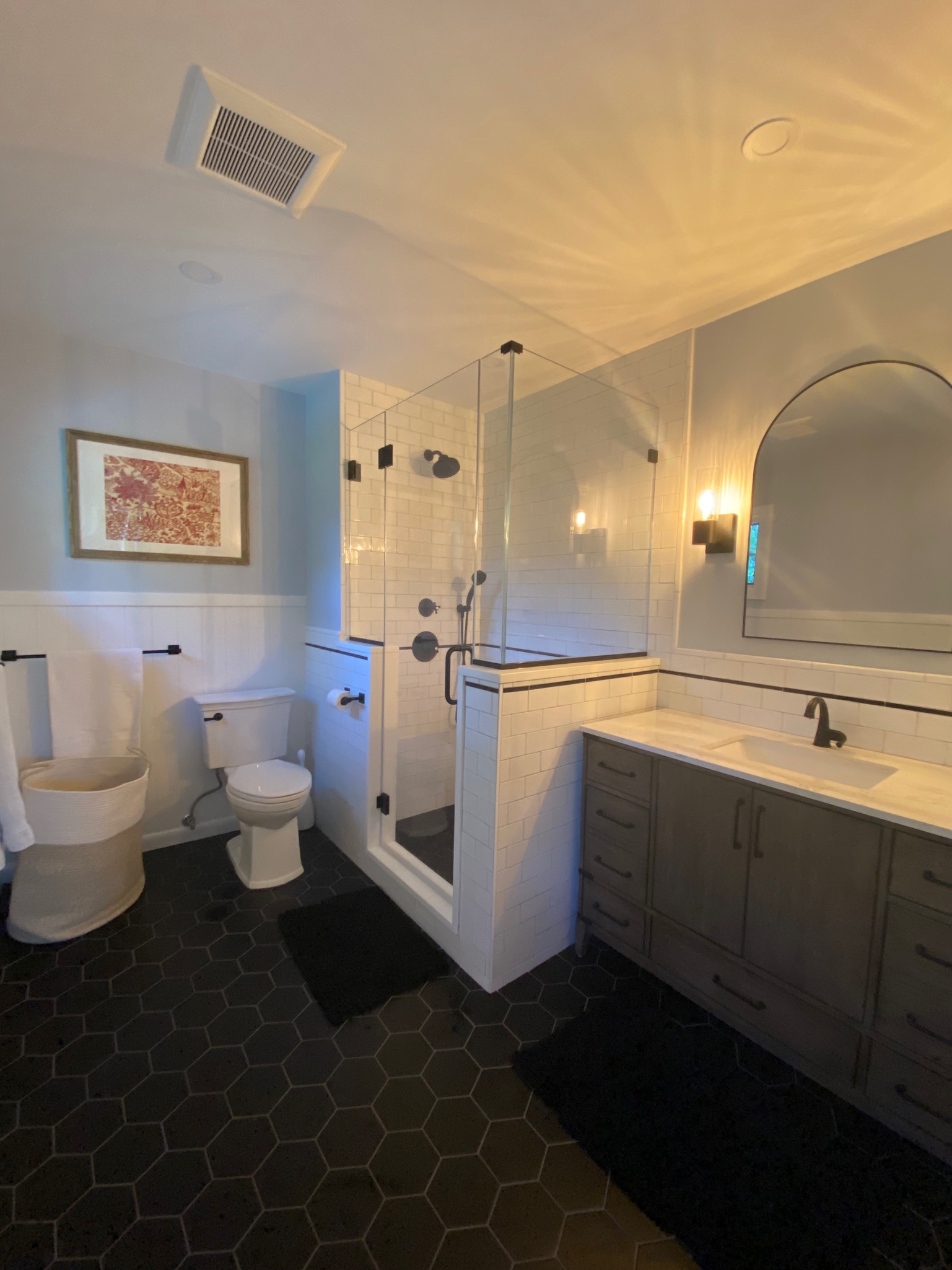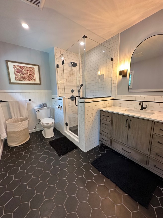 So, 2023 was the year of two bathrooms and zero hot tubs. As it turns out, I love having a shower that reliably produces hot water and is just beautiful. Here’s the masterbath: