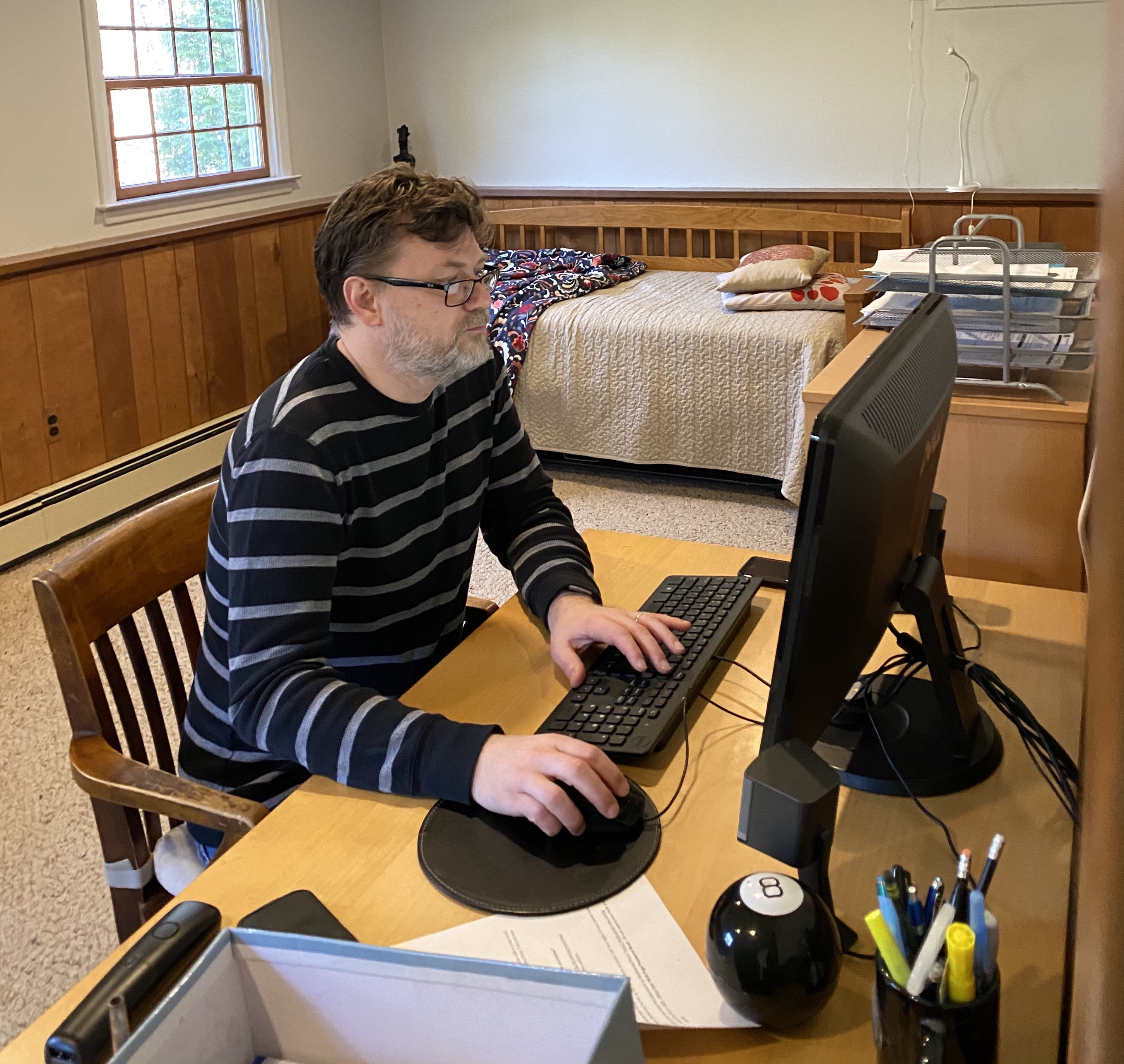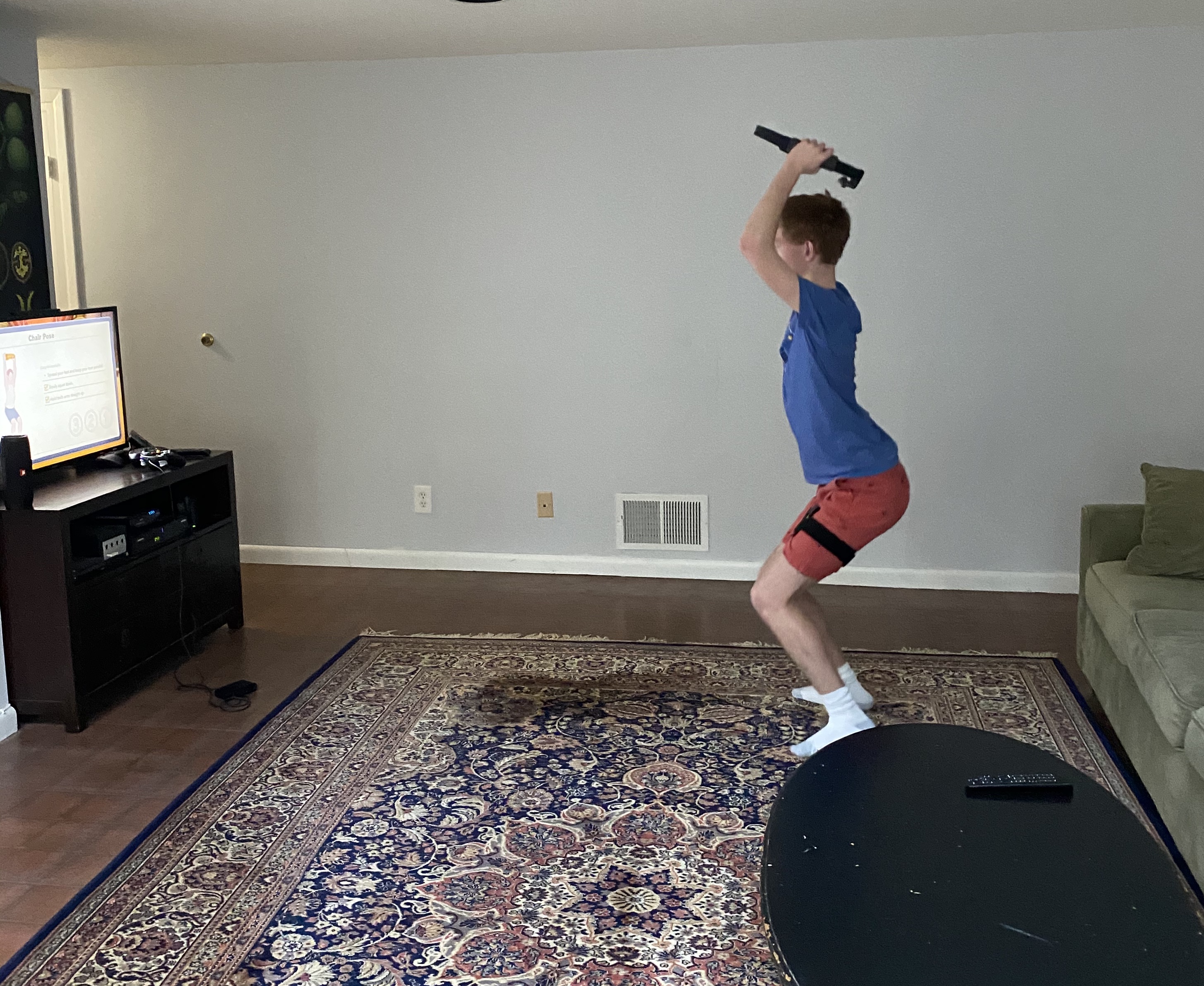 Steve and I are frantically tapping away at our keyboards. Jonah is taking a history midterm. And Ian is doing gym class on the switch with his Ring Fit.